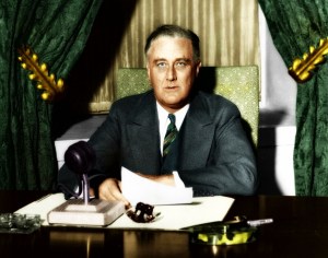 FDR Giving a fireside chat in the 1930s: