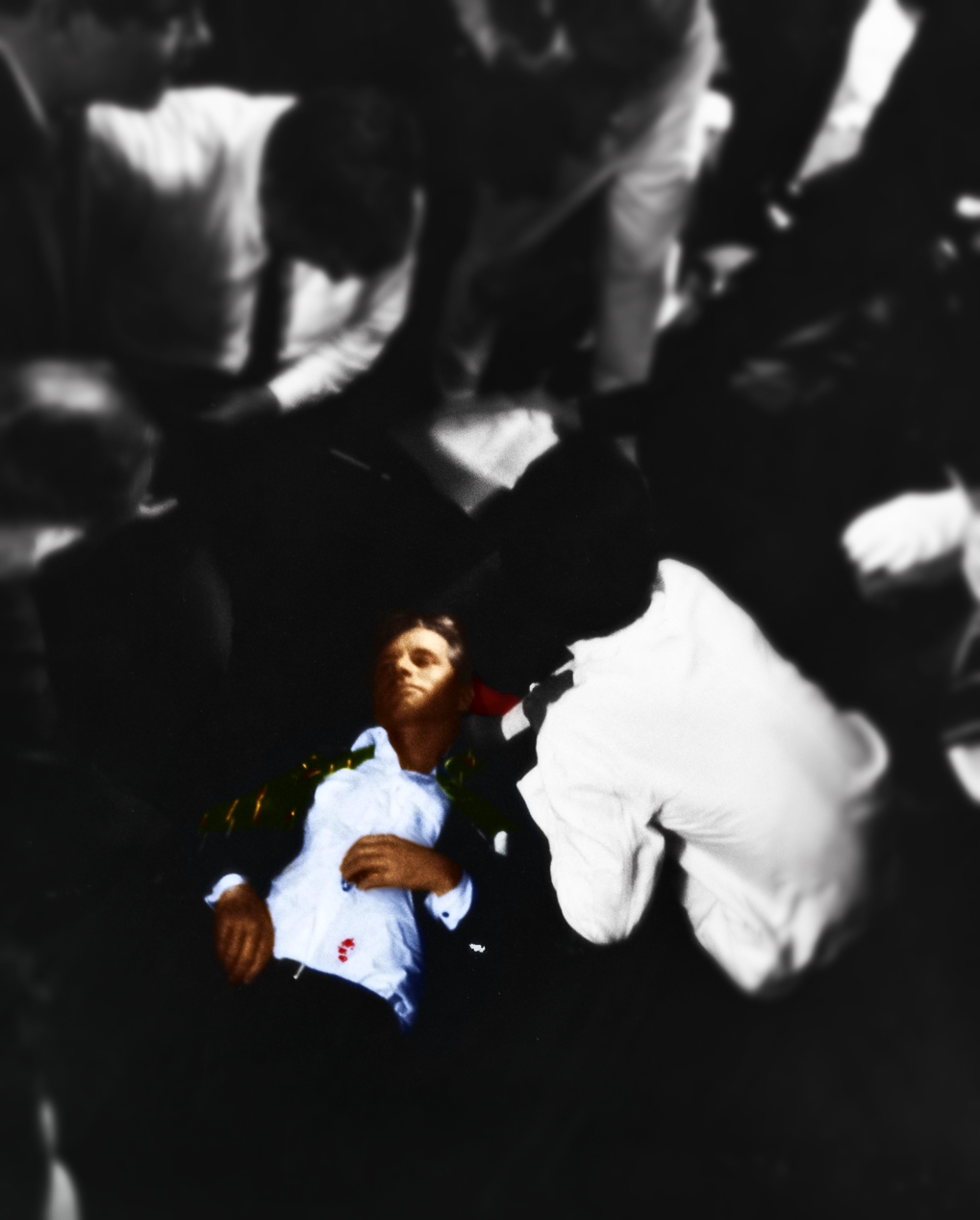 One of my deep interests is developing a way to “restore” color information to black and white imagery for the sake of historical research. Right now the best that I can do is use digital processing to colorize images by layering colors over the original b/w photos. I think that these manipulations bring out elements in these important events/people and help focus the mind’s eye on what the image is telling us through all of the chaos that might swirl through the picture plane.