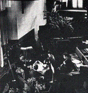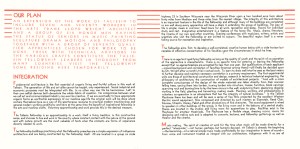 Wright and Olgivanna together conceived of a program that would enable young adults of both genders to learn organic architecture from the master himself. The first Taliesin class was initiated in 1932. The majority of Wright’s young apprentices acted mostly as free labor (they paid Wright for the privilege) they farmed the fields, cut the lumber for the expansion of Taliesin, and on weekends dressed up for dinner and musical performances. Wright used these events to give out morsels of wisdom directly from his mouth.