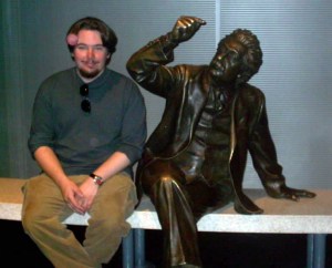 Albert Einstein and me sitting on a bench…my wife says that that is his “ectoplasmic” spirit orbiting my head…