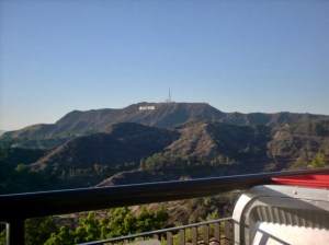 From the terraces around the building the entire Los Angeles basin can be seen. On clear days the skyscrapers of Long Beach are visible and the Palos Verdes peninsula, as well as the Hollywood sign shining bright white in the sun.