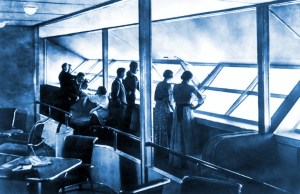 Across the Atlantic the airships would go, cruising at nearly 90 miles an hour, waiters serving beverages and hot meals in the dining rooms. Imagine looking out of the large plate glass of the promenade windows, down upon a wave cresting steamship, waving to the passengers making their even more leisurely way to the New World.