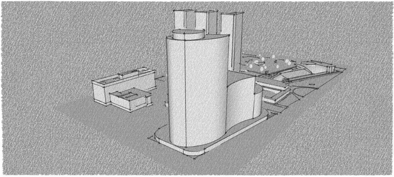 The years have not been kind to the existing civic center. The tower is in danger of structural failure in case of a major earthquake and the main library has had it’s green cover removed due to severe leakage from decaying concrete, damaging the collections.