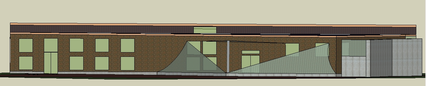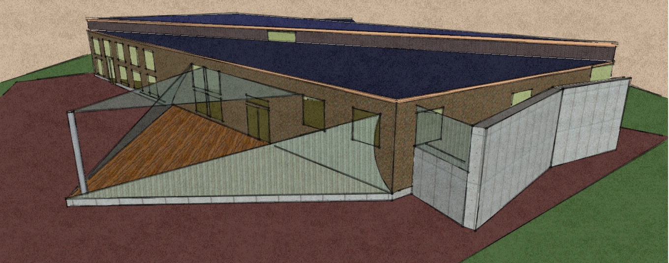 In contrast to the surrounding buildings in the plan, the LBHS structure would utilize brick as well as reclaimed steel and concrete from the demolition of the old Library.