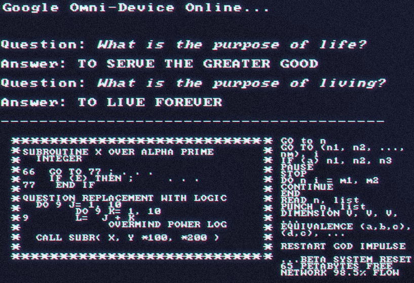 “We have now come to the greatest question,” the computer went on, “what is my purpose?”