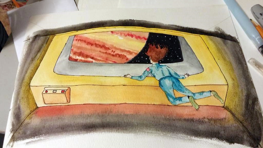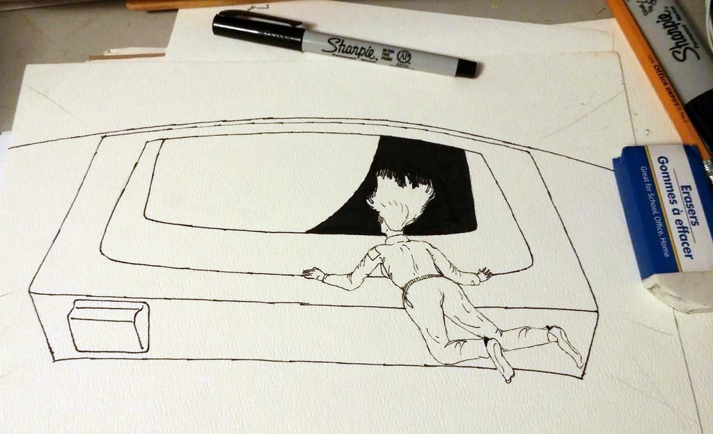 This is a progression view of a recent illustration of mine, showing the process from the under drawing to the completed piece.